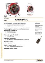 PARKFAN 80, özellikle yer altı otoparklarının duman tahliyesi için geliştirilmiş, üç fazlı elektrik motoruna sahip profesyonel yangın fanıdır. Elektrikli yapısı sayesinde egzoz gazı üretmez ve benzinli eşdeğer modellere göre daha düşük gürültüyle çalışır. EASY POW’AIR teknolojisi ile oluşturduğu yoğun ve odaklanmış hava jeti, çevredeki havayı da sürükleyerek toplam debiyi artırır ve fanın açıklıktan 2 ila 6 metre mesafede dahi sabit ve etkili performans göstermesini sağlar.